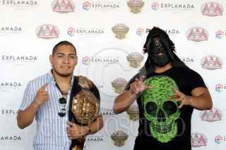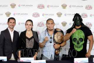 PUEBLA, PUEBLA, 27JULIO2022.- Los luchadores Hijo del Vikingo y la Parka Negra anunciaron el cartel del Campeonato Explanada Puebla, el cual se llevará a cabo el 6 de agosto y contará con varios luchadores de la AAA. FOTO: MIREYA NOVO/ CUARTOSCURO.COM
