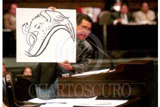 Sesión ordinaria en la Cámara de Diputados, este día se discutió entre otras cosas el mal uso de los símbolos patrios, en especial del escudo nacional, que ha hecho el Ejutivo Federal en sus documentos oficiales, tema expuesto por el legislador perredista felix Salgado Macedonio. FOTO: Christián Palma/CUARTOSCURO.COM