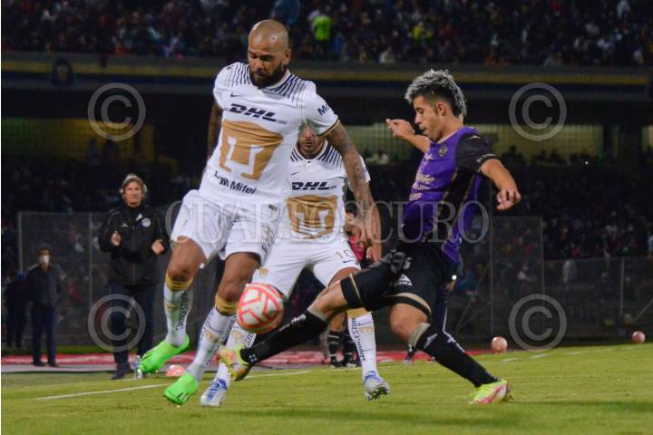 CIUDAD DE MÉXICO, 27JULIO2022.- Los Pumas de la UNAM se enfrentan ante el Mazatlán Futbol Club, en partido correspondiente a la jornada 5 de la Liga MX Apertura 2022. Marcador final: Pumas (1) - Mazatlán (1). Dani Alves, jugador brasileño, realizó su debut en la Liga MX, como refuerzo del conjunto de los Pumas de la UNAM. FOTO: MARIO JASSO/CUARTOSCURO.COM