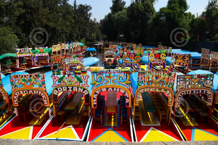 CIUDAD DE MÉXICO. 28JULIO2022.- Trajineras listas para paseos desde 500 pesos la hora en el ambarcadero del centro de Xochimilco. FOTO: VICTORIA VALTIERRA/CUARTOSCURO.COM