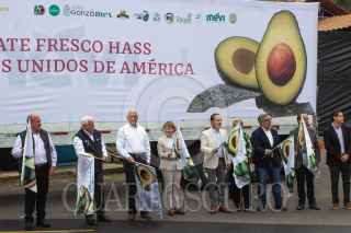 CIUDAD GUZMÁN, JALISCO, 28JULIO2022.- Con un embarque de 201 toneladas de aguacate Hass, provenientes de 10 empaques certificados por las autoridades de sanidad de México y Estados Unidos, inició formalmente la exportación de este producto de Jalisco al mercado de ese país. Al dar el banderazo de salida al primer embarque, el secretario de Agricultura y Desarrollo Rural, Víctor Villalobos Arámbula, destacó que esto es resultado del largo trabajo, compromiso y entrega de productores jaliscienses en 608 huertos. Acompañado del gobernador Enrique Alfaro Ramírez, de la secretaria de Agricultura del gobierno del estado, Ana Lucía Camacho Sevilla, así como de productores y funcionarios federales y estatales, Villalobos Arámbula hizo un reconocimiento a su homólogo de Estados Unidos, Tom Vilsack, por las negociaciones que se mantuvieron en los últimos tres años para alcanzar este logro. FOTO: SECRETARÍA DE AGRICULTURA/CUARTOSCURO.COM