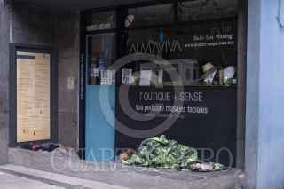 CIUDAD DE MÉXICO, 28JULIO2022.- Personas en situación de calle duermen frente un establecimiento de la Colonia Condesa, frente al Parque España. FOTO: TOMAS ACOSTA /CUARTOSCURO.COM