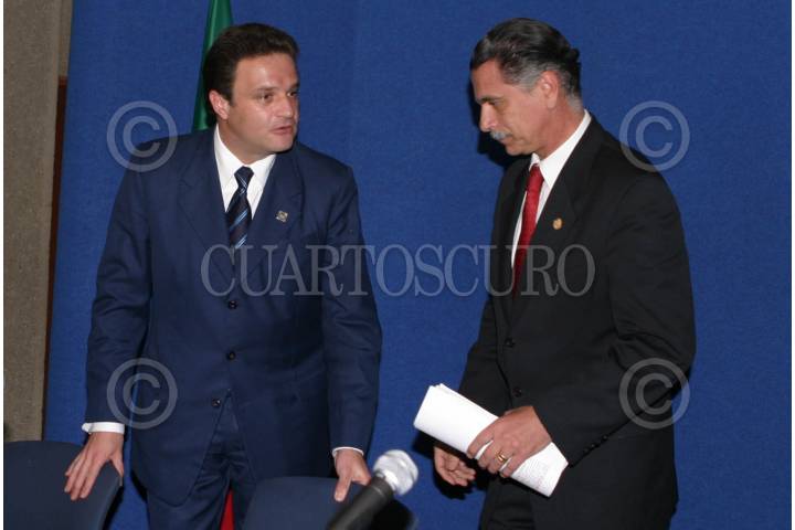 MEXICO, D.F. 22ENERO2007.- Manuel Espina secretario del PAN y Carlos Abascal secretario adjunto de Acción Nacional durante la presentación de los nuevos representantes internos del partido. FOTO: SAUL LOPEZ/CUARTOSCURO.COM
