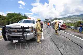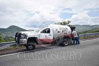 CHILPANCINGO, GUERRERO, 28JULIO2022.- La volcadura de una pipa cargada de Gas Licuado de Petróleo (LP) provocó el cierre de los cuatro carriles de la Autopista del Sol por más de ocho horas, en el tramo que va de Chilpancingo hacia Tierra Colorada, en las inmediaciones de Palo Blanco. De acuerdo con los reportes oficiales, el percance se registró alrededor de las 08:30 horas, cuando la pipa perteneciente a la empresa Gas Acapulco-Tomza, cargada con 4 mil 500 litros se volcó sobre los carriles norte-sur de la Autopista del Sol, cerca de la caseta de peaje de Palo Blanco. Aunque no se provocaron pérdidas humanas, de inmediato se detectó una fuga de combustible en la toma principal del vehículo dispensador, lo que movilizó a bomberos y brigadistas de Protección Civil. La Secretaría de Protección Civil informó que se purgó la válvula y se despresurizó, al ubicar una fuga en el tanque principal se decidió cerrar la circulación vial en la carretera de cuota. FOTO: DASSAEV TÉLLEZ ADAME/CUARTOSCURO.COM