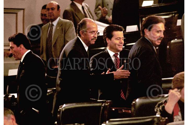 Integrantes de la bancada priísta bromean y chacotean durante la sesión ordinaria de la H. Cámara de senadores. FOTO: Victoria Valtierra/CUARTOSCURO.COM