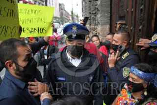 CIUDAD DE MÉXICO, 29JULIO2022.- Florentina Santiago Ruíz, representante de la comunidad zapoteca e indígenas de diferentes comunidades de pie los originarios protestaron afuera del Archivo Histórico de la Ciudad de México para exigir por los artesanos rechazados que no participaran en la próxima Feria de las Culturas Indígenas, Pueblos y Barrios Originarios, la cual se realizará del 5 al 21 de agosto en el Zócalo capitalino. FOTO: GRACIELA LÓPEZ /CUARTOSCURO.COM