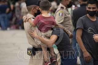 TIJUANA BAJA CALIFORNIA, 29JULIO2022.- Esta tarde se realizó la Ceremonia del Servicio Militar Nacional en la explanada del Cuartel General. Dónde decenas de jóvenes hicieron la toma de protesta. Familiares de los jóvenes asistieron al evento para celebrar este logro con los graduados. Algunos incluso aprovecharon para llevarles sus comidas preferidas. Durante el evento la banda militar del Cuartel tocó algunas melodías para festejar a los graduados. FOTO: OMAR MARTÍNEZ /CUARTOSCURO.COM