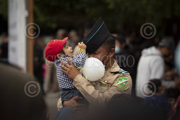 TIJUANA BAJA CALIFORNIA, 29JULIO2022.- Esta tarde se realizó la Ceremonia del Servicio Militar Nacional en la explanada del Cuartel General. Dónde decenas de jóvenes hicieron la toma de protesta. Familiares de los jóvenes asistieron al evento para celebrar este logro con los graduados. Algunos incluso aprovecharon para llevarles sus comidas preferidas. Durante el evento la banda militar del Cuartel tocó algunas melodías para festejar a los graduados. FOTO: OMAR MARTÍNEZ /CUARTOSCURO.COM