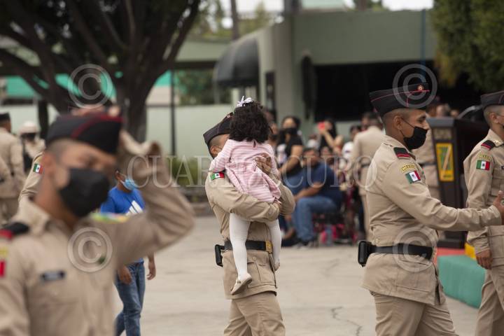 TIJUANA BAJA CALIFORNIA, 29JULIO2022.- Esta tarde se realizó la Ceremonia del Servicio Militar Nacional en la explanada del Cuartel General. Dónde decenas de jóvenes hicieron la toma de protesta. Familiares de los jóvenes asistieron al evento para celebrar este logro con los graduados. Algunos incluso aprovecharon para llevarles sus comidas preferidas. Durante el evento la banda militar del Cuartel tocó algunas melodías para festejar a los graduados. FOTO: OMAR MARTÍNEZ /CUARTOSCURO.COM