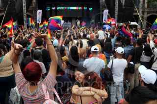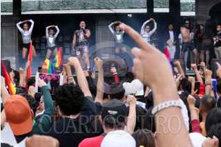 CUERNAVACA, MORELOS, 30JULIO2022.- Decenas de personas de la comunidad lésbico gay asistieron al Cuerna Pride Fest en el zócalo de la capital, donde se presento la agrupación La Factoría. FOTO: MARGARITO PÉREZ RETANA / CUARTOSCURO.COM