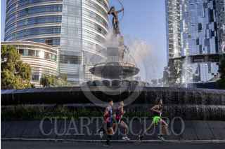 CIUDAD DE MÉXICO, 31JULIO2022.- Más de 25 mil corredores se reunieron en Reforma para salir a un costado de la glorieta caballito en la edición número 15 del Medio Maratón de la Ciudad inició a las 7:05 am con banderazo de Ana Gabriela Guevara, directora de la Comisión Nacional de Cultura Física y Deporte y Javier Hidalgo, director del Instituto del Deporte, después de entonarse el himno nacional y de la salida de los competidores con discapacidad. FOTO: ANDREA MURCIA /CUARTOSCURO.COM