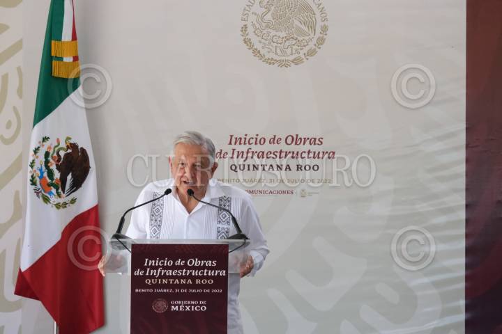 CANCÚN, QUINTANA ROO, 31JULIO2022.- Andrés Manuel López Obrador, Presidente de México; Carlos Joaquín González, gobernador de Quintana Roo, y Mara Lezama, gobernadora electa de Quintana Roo, encabezaron el inicio de obras de infraestructura, en la Glorieta 16 de Abril. FOTO: ELIZABETH RUIZ/CUARTOSCURO.COM