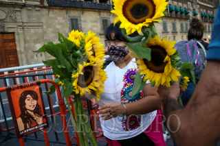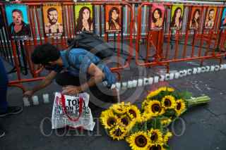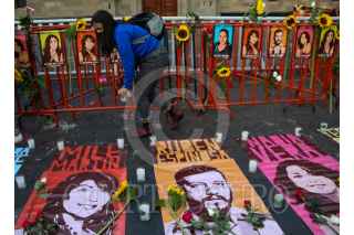 CIUDAD DE MÉXICO. 31JULIO2022.- Activistas y familiares de los 5 asesinados en el departamento de Luz Saviñon en la colonia Navarte, se manifestaron frente a Palacio Nacional para demandar el esclarecimiento del múltiple homicidio hace 7 años. FOTO: VICTORIA VALTIERRA/CUARTOSCURO.COM