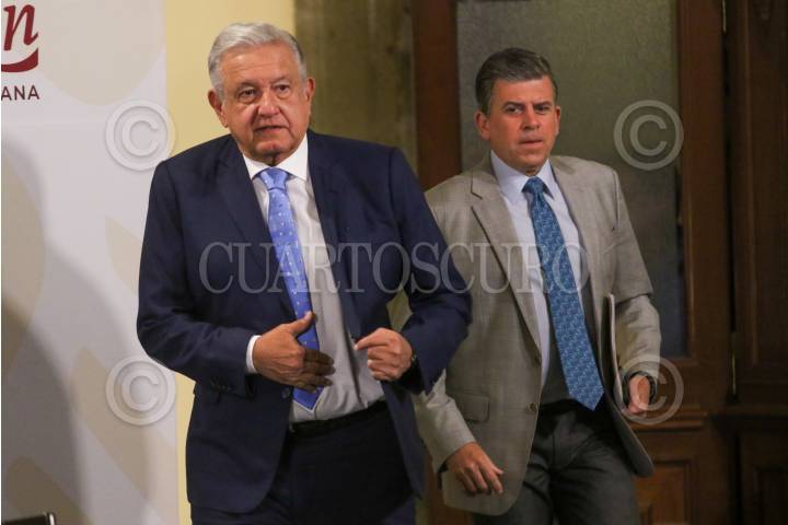 CIUDAD DE MÉXICO, 01AGOSTO2022.- Andrés Manuel López Obrador, Presidente de México, y Ricardo Sheffield Padilla, director de Profeco, durante la mañanera en Palacio Nacional. FOTO: MOISÉS PABLO/CUARTOSCURO.COM