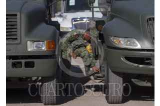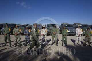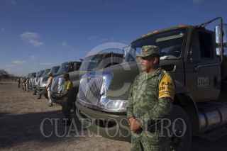 ESCOBEDO, NUEVO LEÓN, 01AGOSTO2022.- Mediante la implementación del Plan DN-III del por parte de elementos del Ejército de la Séptima Zona Militar, se desplegaron 114 vehículos cisterna que llevarán agua a 10 municipios afectados por el desabasto de agua, la cual estipula 5 millones, 330 mil litros para más de 200 mil familias. FOTO: GABRIELA PÉREZ MONTIEL / CUARTOSCURO.COM