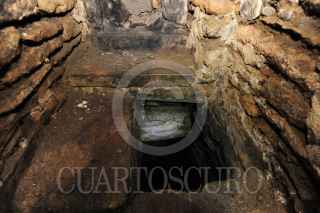 OCOSINGO, GUERRERO, 01AGOSTO2022.- Es probable que los cadáveres de, al menos, un par de gobernantes, así como el de una señora de Toniná, el antiguo reino maya de Po’p que rivalizó con Palenque en el periodo Clásico maya (500-687 d.C.), hubiesen sido sometidos a una parafernalia religiosa para reducirlos a cenizas y que, a su vez, sus restos hayan servido para elaborar bolas de hule usadas en la cancha del Juego de Pelota, espacio simbólico del camino eclíptico del cielo, por donde transitan y se enfrentan los astros, espacio de guerra y muerte, de espectáculo y poder. Tal hipótesis es planteada por el investigador del Instituto Nacional de Antropología e Historia (INAH), Juan Yadeun Angulo, luego del hallazgo, en 2020, de una cripta prehispánica en el Templo del Sol, la estructura piramidal más importante de esta zona arqueológica del valle de Ocosingo, en Chiapas, y del estudio del contexto arqueológico que resguardaba, en el que sobresalían más de 400 vasijas que contenían material orgánico, como cenizas, carbón, goma y raíces. El responsable de la investigación y conservación del sitio, desde hace 42 años, narra que el registro de ese espacio derivó de las recientes exploraciones en el costado norte de dicho templo, desarrolladas por la Secretaría de Cultura del Gobierno de México, a través del INAH, durante las cuales se ubicó una tapa de piedra –de 90 por 60 centímetros– con la representación de un cautivo atado, misma que fue llevada al museo de sitio y reemplazada in situ por una réplica. FOTO: INAH/CUARTOSCURO.COM