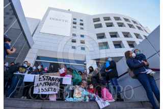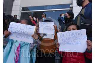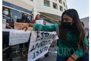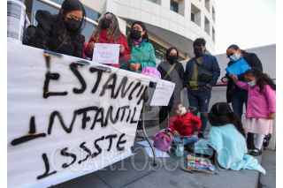 TOLUCA, ESTADO DE MÉXICO, 01AGOSTO2022.- Madres de familia derechohabientes del ISSSTE se manifestaron en la delegación del Estado de México ubicada en Toluca denunciando la cancelación del servicio de estancias infantiles para sus hijos, que a partir de este lunes ya no fueron recibidos, siendo un servicio al cual tienen derecho y pagan, es un total de 3 escuelas en Toluca y una en Tultitlán; entregaron un oficio dirigido al Delegado estatal en espera de una respuesta que solucione esta problemática. FOTO: CRISANTA ESPINOSA AGUILAR /CUARTOSCURO.COM
