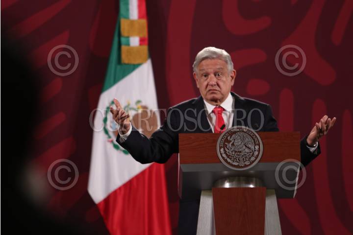 CIUDAD DE MÉXICO, 03AGOSTO2022.- Andrés Manuel López Obrador, presidente de México acompañado Diego Prieto Hernández, director general del Instituto Nacional de Antropología e Historia y Ana Elizabeth García Vilchis durante conferencia de prensa en Palacio Nacional. FOTO: ANDREA MURCIA /CUARTOSCURO.COM