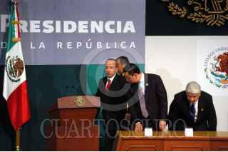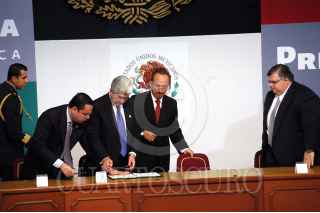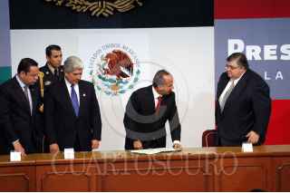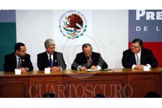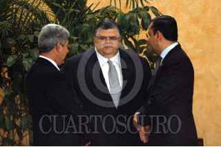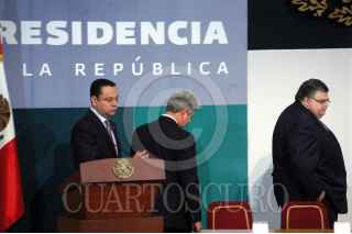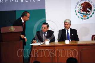 MÉXICO D.F. 23ENERO2007.- Germán Marínez Cazares, secretario de la función pública, Francisco Javier Ramírez Cacuña, secretario de gobernación y Agustín Cartens, secretario de hacienda y credito público durante la firma de la Iniciativa de Ley de Remuneraciones, esto en la residencia oficial de los Pinos. FOTO: GUILLERMO PEREA /CUARTOSCURO.COM