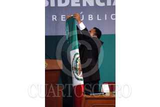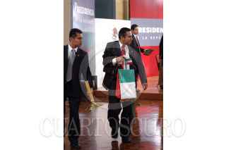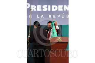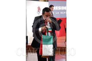 MÉXICO D.F. 23ENERO2007.- Un elementos del estado mayor, lleva sobre un gancho de ropa la bandera nacional al termino del evento del presidente donde realizo la firma de la Iniciativa de ley de Remuneración, esto en la residencia oficial de los Pinos. FOTO: GUILLERMO PEREA /CUARTOSCURO.COM
