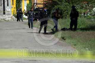 JIUTEPEC, MORELOS, 03AGOSTO2022.- Durante esta mañana se reporto el homicidio de tres hombres en la zona metropolitana de Morelos. El primer caso indicaba que en la calle Piedra de Jade de la colonia Pedregal de Tejalpa en Jiutepec se encontraba el cadáver de un hombre envuelto en bolsas de basura. En ese mismo sitio el pasado 10 de diciembre dejaron dos cadáveres. Mas tarde se reporto el hallazgo de dos cuerpos sin vida a la vera de un camino de terracería en los campos de labranza del poblado indígena de Tetlama en el municipio de Temixco. En ambos casos policía de Morelos, Guardia Nacional y Ejercito llegaron al sitio para resguardarlo para que mas tarde, peritos e investigadores de la Fiscalía recogieran indicios y finalmente el Servicio Medico Forense levanto los cuerpos sin vida y los traslado a la morgue en espera de que sean identificados. FOTO: MARGARITO PÉREZ RETANA / CUARTOSCURO.COM