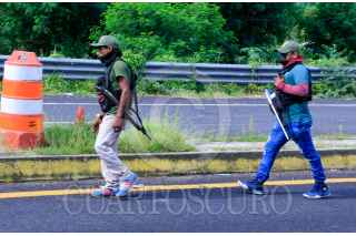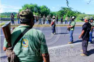 ACAPULCO, GUERRERO, 03AGOSTO2022.- Policías ciudadanos de la Unión de Pueblos y Organizaciones del Estado de Guerrero (Upoeg) en retén instalado sobre la carretera Acapulco-Pinotepa Nacional, en dónde se mantienen alertas, luego del enfrentamiento qué ayer sostuvieron con policías ministeriales, en la comunidad de Tres Palos, en dónde un policía ciudadano murió luego de ser herido en el enfrentamiento. En declaraciones que hoy hizo la fiscalía del estado de Guerrero, vínculo a la policía de la Upoeg con la delincuencia organizada. foto: Carlos Alberto Carbajal FOTO: CARLOS ALBERTO CARBAJAL/CUARTOSCURO.COM