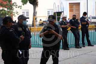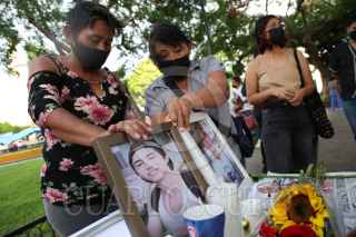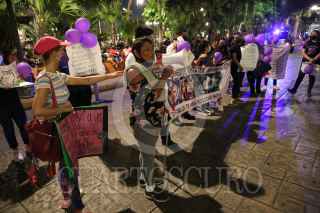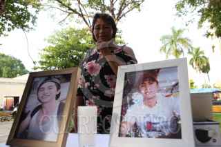 MÉRIDA, YUCATÁN, 03AGOSTO2022.- Al cumplirse un año del deceso del joven José Eduardo Ravelo Echavarría, su madre Dora María Ravelo realizó un rezo en su memoria en el parque de San Juan, en el centro histórico de esta ciudad, lugar en dónde fue detenido por elementos de la Policía Municipal. Dora María recordó la detención de su hijo al tiempo que acomodaba dos fotografías impresas y unas veladoras sobre una mesa de plástico, comentó que la policía lo traslado a la cárcel pública por una falta administrativa en dónde fue víctima de tortura, posteriormente el 3 de agosto de 2021 falleció en el Hospital O ‘Horan de Mérida debido a las lesiones que presentaba. A la manifestación pacífica se unió un grupo de mujeres que pidieron justicia por el caso de sustracción de una menor de edad. El contingente marchó por las principales calles del centro histórico hasta Palacio de Gobierno en dónde pidieron la intervención del gobernador del Estado Mauricio Vila Dosal. FOTO: MARTÍN ZETINA/CUARTOSCURO.COM