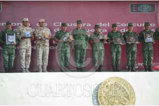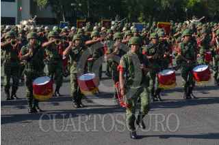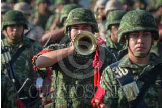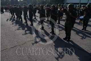 CIUDAD DE MÉXICO, 05AGOSTO2022.- La Secretaría de la Defensa Nacional (Sedena) realizó en las instalaciones del Campo Militar 1-A la ceremonia de premiación a las dieciséis bandas de guerra de las corporaciones de las armas y cuerpos especiales del ejército mexicano en la etapa nacional 2022, de las cuales se formará la banda monumental que participará en el desfile militar del próximo 16 de septiembre. FOTO: MARIO JASSO/CUARTOSCURO.COM