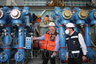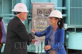 CIUDAD DE MÉXICO, 05AGOSTO2022.- Claudia Sheinbaum, jefa de Gobierno; Manuel Bartlett, director de la Comisión Federal de Electricistas (CFE); Guillermo Calderón Aguilera, director del Sistema de Transporte Colectivo Metro, y Andrés Lajous, secretario de Movilidad, realizaron un recorrido en la supervisión del proyecto Metro-Energía, realizado en las instalaciones de la CFE. FOTO: GRACIELA LÓPEZ / CUARTOSCURO.COM