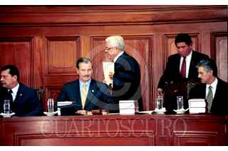 Enrique Jackson, Vicente Fox, Genaro David Góngora y Ricardo García Cervantes durante el informe anual de labores del presidente de la Suprema Corte de Justicia de la Nación. FOTO: Victoria Valtierra/CUARTOSCURO.COM
