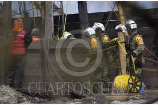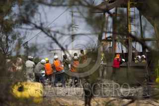SABINAS, COAHUILA, 05AGOSTO2022.- Elementos de la Guardia Nacional, SEDENA, Protección Civil y bomberos, siguen en las labores de rescate en el lugar donde 10 mineros se encuentran atrapados en el pozo carbonífero El Pinabete, que tiene 60 metros de profundidad. FOTO: GABRIELA PÉREZ MONTIEL/CUARTOSCURO.COM