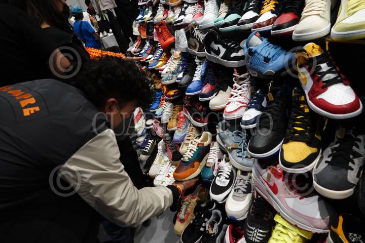 CIUDAD DE MÉXICO, 06AGOSTO2022.- Más de 100 expositores, marcas y artistas se dieron cita en el Pepsi Center para celebrar el primer día del Sneaker Fever, evento que reúne a coleccionistas, aficionados y seguidores de la cultura de los tenis. Entre los estantes se pueden encontrar zapatillas de las colaboraciones con cantantes como: Travis Scott, Billie Eilish y Eminem, por mencionar algunos. Así como colaboraciones con marcas de lujo como Louis Vuitton y Dior. Los precios van desde los 3000 pesos mexicanos y algunas de las piezas llegan a costar hasta más de 100 mil. FOTO: GALO CAÑAS/CUARTOSCURO.COM
