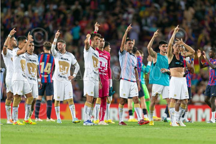 BARCELONA, ESPAÑA, 07AGOSTO2022.- FC Barcelona se impuso por 6-0 a los Pumas en la LVII edición del Trofeo Joan Gamper, que se disputó en el Spotify Camp Nou, en la ciudad de Barcelona, España. El encuentro también fue la oportunidad para Dani Alves de despedirse de los aficionados culés, después de haber formado parte de su plantel la campaña pasada. Los catalanes salieron decididos a quedarse con el triunfo en su presentación ante sus aficionados (la asistencia oficial fue de 83 021 personas) y en apenas 20 minutos ya habían logrado anotar en cuatro ocasiones. FOTO: CLUB PUMAS/CUARTOSCURO.COM