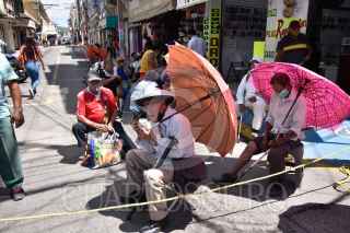 CHILPANCINGO, GUERRERO, 08AGOSTO2022.- Adultos mayores y personas con capacidades diferentes de la organización Digna Ochoa, bloquean calles del centro de Chilpancingo para exigir al gobierno del Estado que regrese programas sociales que les fueron suprimidos a la llegada del actual gobierno. De acuerdo con el dirigente de la organización Juan Valenzo Villanueva, durante el anterior gobierno priísta, los adultos mayores que se encuentran inscritos en el programa Federal de pensión para el Bienestar, recibían en el estado un apoyo adicional de 800 pesos, qué es un apoyo alimentario, pero a la llegada de la gobernadora Evelyn Salgado Pineda este programa fue retirado. Lo mismo pasó con las personas discapacitadas que se encuentran en un rango de edad de entre 30 y 65 años mismas que no cuentan con un apoyo federal y estaban inscritas en un programa del gobierno del Estado que también se dejó de pagar desde el mes de febrero. FOTO: DASSAEV TÉLLEZ ADAME/CUARTOSCURO.COM