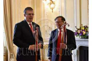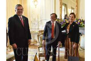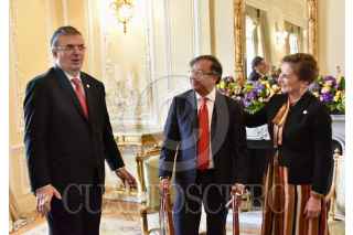BOGOTÁ, COLOMBIA, 08AGOSTO2022.- La doctora Beatriz Gutiérrez Müller y el canciller Marcelo Ebrard Casaubon se reunieron hoy en Bogotá con Gustavo Petro Urrego y con Francia Márquez Mina, los nuevos presidente y vicepresidenta de esa nación. La delegación mexicana transmitió al presidente Petro y a la vicepresidenta Márquez los saludos y el cariño del presidente Andrés Manuel López Obrador, así como una invitación para visitar México en fecha próxima. Durante el encuentro celebrado en la Casa de Nariño, los representantes de México y Colombia conversaron sobre las posibilidades de mayor cooperación en materia de desarrollo social, salud, integración regional, seguridad y energía. FOTO: SRE/CUARTOSCURO.COM