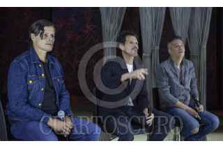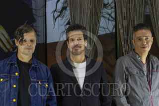 CIUDAD DE MÉXICO, 09AGOSTO2022.- Mario Familiar, vocalista; Edgar Hansen Otero, bajista y Erik Neville, guitarrista; en conferencia de prensa para anunciar sus próximos conciertos. Las entradas para el concierto del 13 de agosto en el Palacio de los Deportes se encuentran agotadas. FOTO: TOMAS ACOSTA / CUARTOSCURO.COM