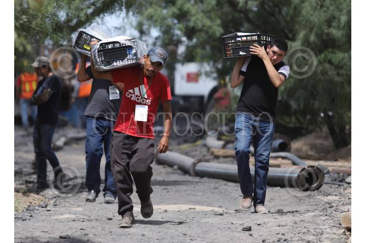 SABINAS, COAHUILA, 09AGOSTO2022.- Familiares de los 10 mineros atrapados en el pozo de carbón en Agujita, en el complejo minero Las Conchas, externan su desesperación ya que ven poco movimiento por parte de las autoridades en lo que respecta a un operativo de rescate. La Marina el día ayer introdujo un dron acuático para evaluar los posibles accesos, sin embargo detecto que hay varios derrumbes por lo que informaron que esperan reducir aún mas el nivel del agua. El pasado miércoles un derrumbe al interior de la mina inundo la oquedad. FOTO: ALEJANDRO RODRÍGUEZ/CUARTOSCURO.COM