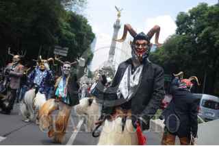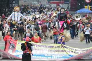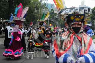 CIUDAD DE MÉXICO, 09AGOSTO2022.- Integrantes de distintas comunidades indígenas de alrededor del país se reunieron en el Ángel de la Independencia para conmemorar el Día Internacional de los Pueblos Indígenas y al ritmo de la Calenda avanzaron por Paseo de la Reforma hasta llegar al Zócalo de la capital. FOTO: DANIEL AUGUSTO /CUARTOSCURO.COM