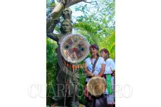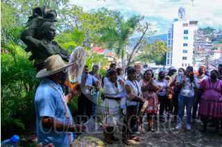 ACAPULCO, GUERRERO, 09AGOSTO2022.- La Unión de Indígenas Radicados en Acapulco, conmemoró el Día Internacional de los Pueblos Indígenas junto a la estatua de el Emperador Cuauhtémoc, durante la ceremonia qué realizaron pidieron a las autoridades ya no ser discriminados y que les permitan trabajar honradamente en la avenida Costera, luego de que el secretario de turismo de Acapulco, David Abarca. declarará que dan una mala imagen a los turistas. FOTO: CARLOS ALBERTO CARBAJAL/CUARTOSCURO.COM