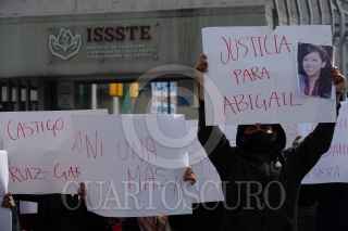 CIUDAD DE MÉXICO, 10AGOSTO2022.- Familiares y amigos de la enfermera Daniela Abigail de la Cruz, acudieron a la dirección general del Instituto de Seguridad y Servicios Sociales de los Trabajadores del Estado (ISSSTE) para exigir justicia por la muerte de la mujer de 26 años; lo anterior por una presunta negligencia médica tras un mal diagnóstico de un tumor cerebral y más de 20 operaciones que la dejaron sin habla. Las y los inconformes mostraron pancartas con las leyendas: “Justicia para Daniela Abigail”, “Ni Una Más”, “Fuera Dr Ruiz. Asesino” y “Basta de Negligencia”. FOTO: GALO CAÑAS/CUARTOSCURO.COM