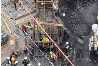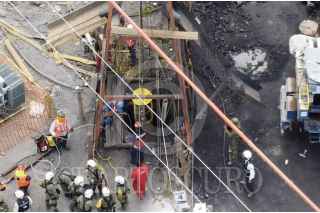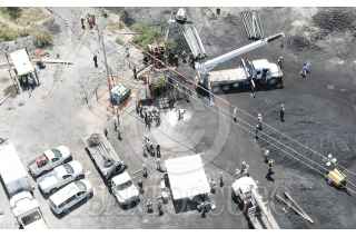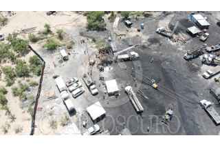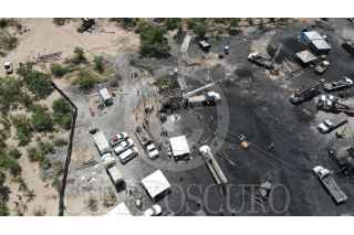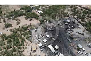 SABINAS, COAHUILA, 10AGOSTO2022.- En imágenes aéreas se observa que personal militar se dispone a bajar en una canastilla al fondo del pozo minero Agujilla, e iniciar formalmente el operativo para rescatar a los mineros que están atrapados desde el pasado miércoles, luego de que se inundará tras un colapso de la oquedad. FOTO: ALEJANDRO RODRÍGUEZ/CUARTOSCURO.COM