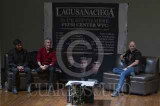 CIUDAD DE MÉXICO, 10AGOSTO2022.- Daniel Gutiérrez, vocalista; Germán Arrollo, baterista y Luis Ernesto Martínez, bajista, en conferencia de prensa para anunciar su próximo concierto en el recinto Pepsi Center WTC. Además aprovecharon para contar su experiencia al componer un disco durante la pandemia. FOTO: TOMAS ACOSTA / CUARTOSCURO.COM