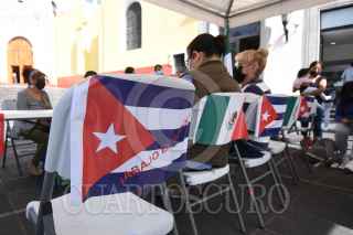 XALAPA, VERACRUZ, 11AGOSTO2022.- Activistas y cubanos que habitan el estado se encuentran realizando jornadas de ayuda para los damnificados y víctimas del incendio ocurrido en un parque de depósitos de combustibles de Matanzas, Cuba. Con el fin, de apoyar al pueblo cubano tras las explosiones de los tanques petroleros registradas hace unos días. FOTO: YERANIA ROLÓN/CUARTOSCURO.COM
