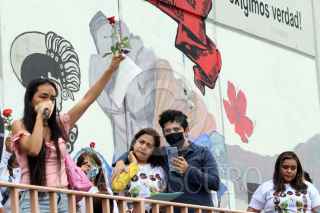 CUERNAVACA, MORELOS, 12AGOSTO2022.- Angelica Rodríguez, madre de Viridiana Morales Rodríguez, desaparecida hace diez años, realizo un evento conmemorativo en la facultad de psicología donde estudiaba, y donde hay un mural con su imagen con el siguiente mensaje “ Este mural se quitara el día que nuestra compañera Viridiana vuelva a caminar por los pasillos de esta facultad”. Viridiana Anaid Morales Rodríguez tenia 21 años cuando el 12 de agosto del 2012 junto con su esposo Roberto Altamirano, viajo al municipio de Tenango del Valle, Estado de México, para acampar en el bosque y celebrar su primer aniversario como pareja, ahí fue la ultima vez que alguien los vio. Un día después el cadáver de su esposo fue localizado a seis kilómetros de donde se les vio por ultima vez. Angelica Rodríguez, su madre, denuncio su desaparición el 15 de agosto a la entonces Procuraduría de Justicia del Estado de México, desde entonces no ha dejado de buscarla, se presume que podría ser victima de un caso de trata de blancas. Familiares e integrantes de otros colectivos de búsqueda del país acompañaron a Angelica Rodríguez mientras conmovida leyó una carta dedicada a su hija. FOTO: MARGARITO PÉREZ RETANA/ CUARTOSCURO.COM