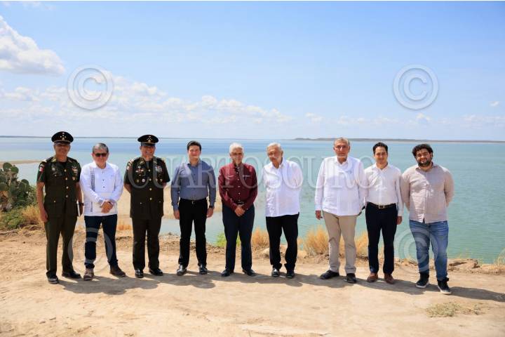 CHINA, NUEVO LEÓN, 13AGOSTO2022.- El presidente Andrés Manuel López Obrador y el gobernador Samuel García recorrieron la planta de bombeo China-Monterrey, el cual anuncian garantizar agua hasta el 2050. Funcionarios estatales y federales conocieron los detalles de la construcción del acueducto Cuchillo II, que dará 5 mil litros de agua por segundo adicionales al Área Metropolitana de Monterrey. FOTO: PRENSA NUEVO LEÓN