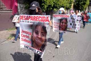 CUERNAVACA, MORELOS, 13AGOSTO2022.- Celia Salinas Maya, madre de la joven Jessica Cerón Salinas quien desapareció cuando tenia 9 meses de embarazo, encabezo una marcha para conmemorar el decimo aniversario. Jessica Cerón Salinas desapareció el 13 de agosto del 2013 en Jiutepec luego de estar platicando con “Nicolás” padre del bebe que esperaba. La averiguación que lleva a cabo la Fiscalía de Justicia del Estado de Morelos durante todos estos años ha sido deficiente, llegando incluso al caso de que se perdieron algunas pruebas del expediente. Su madre demando justicia y eficiencia en las averiguaciones y recordó cariñosamente a su hija. FOTO: MARGARITO PÉREZ RETANA/ CUARTOSCURO.COM