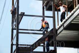 CUERNAVACA, MORELOS, 13AGOSTO2022.- Cuatro hombres que construyen una estructura toman un descanso. FOTO: MARGARITO PÉREZ RETANA/ CUARTOSCURO.COM