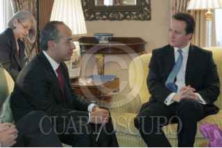 LONDRES, INGLATERRA,29ENERO2007.- El presidente de México Felipe Calderón se reunió el señor David Cameron, líder del Partido Conservador, el principal partido de oposición del Reino Unido. Conversaron sobre la actualidad política y económica en ambos países e intercambiaron puntos de vista sobre diversos temas de la agenda internacional y de carácter global, incluyendo temas en el área de medio ambiente, particularmente sobre la manera de enfrentar el cambio climático. FOTO: ALFREDO GUERRERO/CUARTOSCURO.COM
