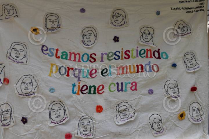 CIUDAD DE MÉXICO, 14AGOSTO2022.- Madres de víctimas de violencia y la colectiva Las siempre vivas se reunieron en la autonombrada Glorieta de Mujeres que Luchan en Paseo de la Reforma para realizar jornada de bordado previo a exposición colectiva que tendrán. Las mujeres buscan nombrar a sus familiares y otras mujeres desde el bordado. FOTO: ANDREA MURCIA /CUARTOSCURO.COM