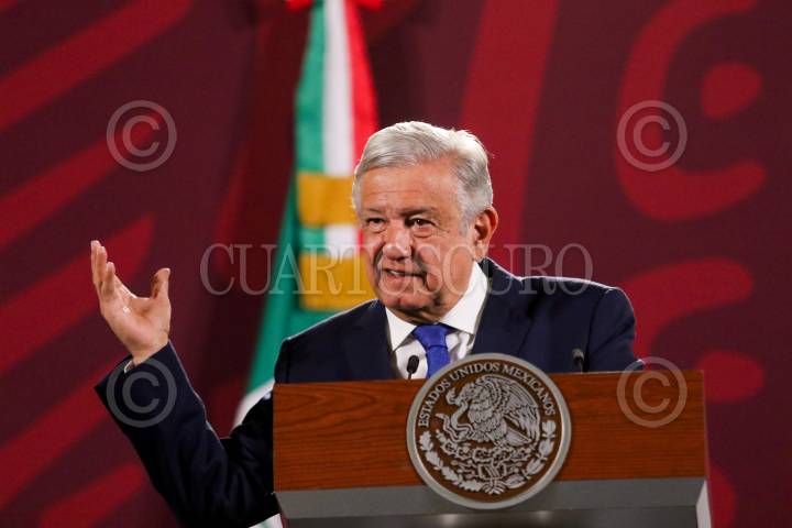 CIUDAD DE MÉXICO, 15AGOSTO2022.- Andrés Manuel López Obrador, Presidente de México; Ricardo Sheffield Padilla, titular de Profeco, y Delfina Gómez, secretaria de Educación Pública, durante la mañanera en Palacio Nacional. El mandatario inició hablando de los trabajos de rescate de los mineros del pozo de carbón El Pinabete, y de la jornada de violencia que vivieron ciudades como Ciudad Juárez y Tijuana, asegurando que medios como Reforma habían aprovechado para exagerar los hechos en la cantidad de personas muertas por estos hechos. FOTO: MOISÉS PABLO/CUARTOSCURO.COM